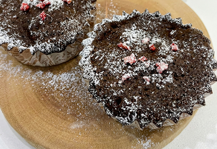 (純ココア、きび糖、卵、オリーブオイル、黒豆で混ぜてレンチンするだけ)を紹介しています。